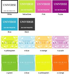 ・お客様のフレグランス名を印刷(図は、フレグランス名が『UNIVERSE』の場合の例)