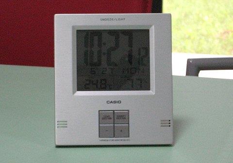 ●2011年6月27日毎朝出社したら確認する温度と湿度。今日は「77%」。「20%以下、乾燥厳しい!」と言っていた1月がウソのようです。ジメジメですが、爽やかに今日も乗り切りたいですね(湿度・温度計計付き時計。湿度計は右下)。