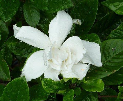 昨日から「くちなし」のご注文の異常な盛り上がり。さては、NHKでまたクチナシのなにかが取り上げられたのかな?写真は本日、事務所の茂みに植えられているクチナシの花のショット。最盛期です。雨に打たれて水も滴るいい香り。