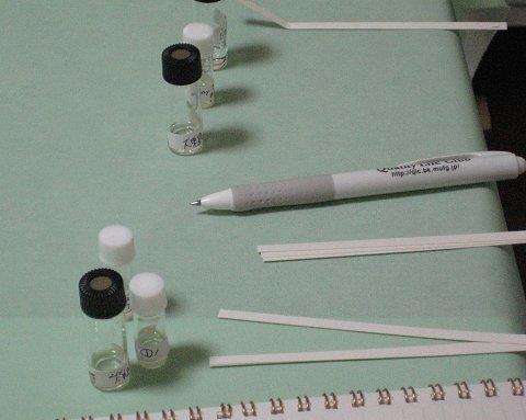 ●2011年6月30日香道の一つ「小鳥香」(ことりこう)を社内で体験。少しアレンジして香水で香り当て。昔の貴族たちの優雅な催し事に見えて案外、現代人でも燃える楽しさ。調香セミナーの中に取り入ればおもしそう。