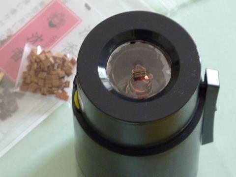 ●2011年7月20日空気がどんよりの日には事務所でお香を焚くことがあります(香水は禁止なのに)。写真は松栄堂さんの電池式香炉。数ミリ四方の香木がいい案配に・・・