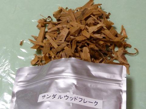 ●2011年7月22日禁断の「白檀フレイク」。白檀木片です。フレイクは「チョコフレーク」のフレイク、鰹節のように刃物で薄く削り取ったモノ。1年くらい前に白檀キャンペーン用に仕入れました。「使い道が・・」という方が多かったのか、今ひとつでしたが、ある出版社から撮影用の貸出し依頼を受けたことが一番ヒットかな?白檀ファンの方へ、白檀フレイクもえらえばうれしいでしょうか?私のオススメは布きれにまいてタンスヘGO。