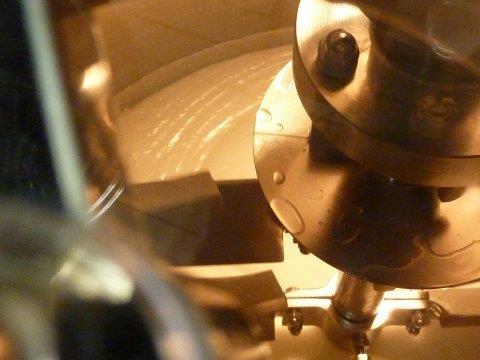 ●2011年11月11日香水の重要な原料、ローズオイルは秋になると固まり出します。同じブルガリア産でも16度や18度で固まるモノもあれば、20度や22度で固まるモノも。写真は今年のブルガリアン・ローズオイル。すでにカチカチ。