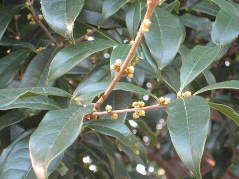 ●2011年9月29日金木犀の蕾。いよいよ金木犀の花が咲きそうです。銀木犀はそろそろ香り始めているようです。早朝公園でショット。
