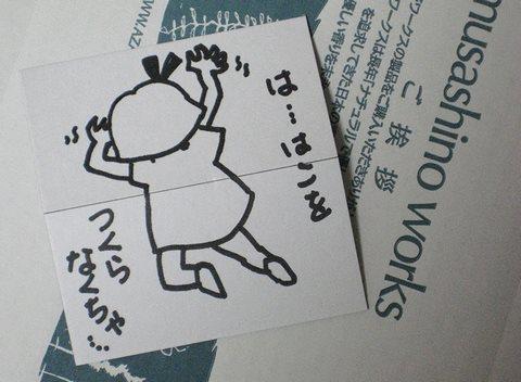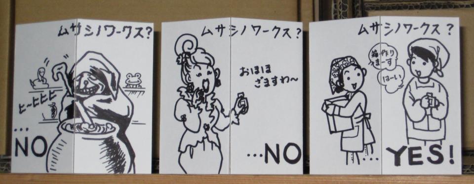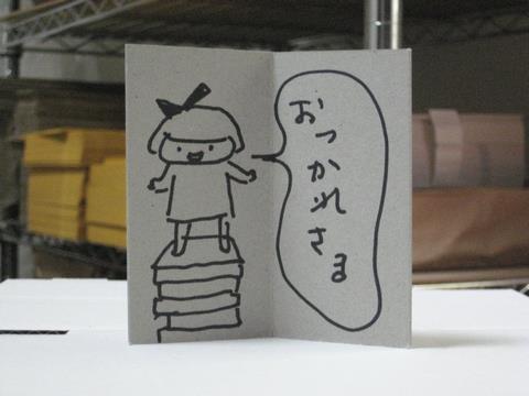 ●2011年10月24日さらに別のスタッフのイラストを発見。発送資材の部屋は、箱折りなど単純な作業が多い部屋、息抜きアートで箱折りも楽しく・・・