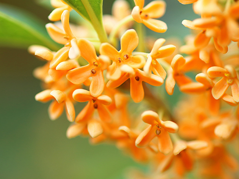 キンモクセイから香料はごく微量採取できる、しかし、その香りは、花とは全然違う香りだ。