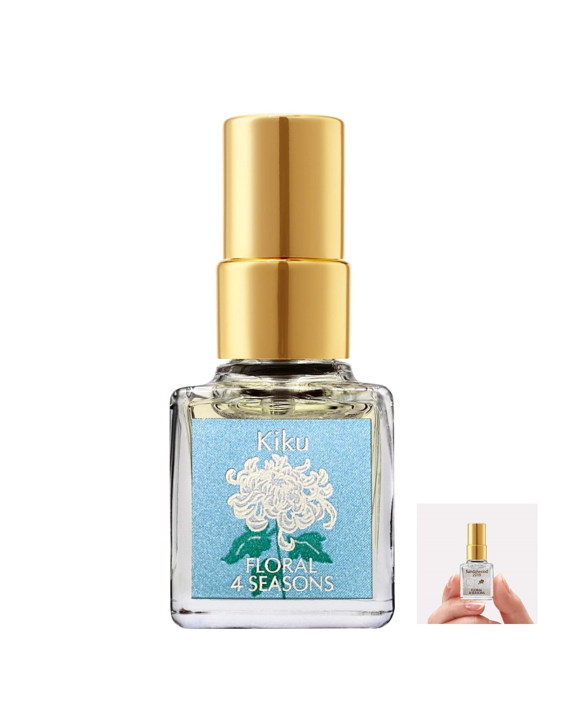 香水シリーズ『菊』はキクをテーマにした香水です。『菊』の特徴は薬草を思わせるナチュラルなグリーンノート。プラスしてパウダリックなフローラルノート。